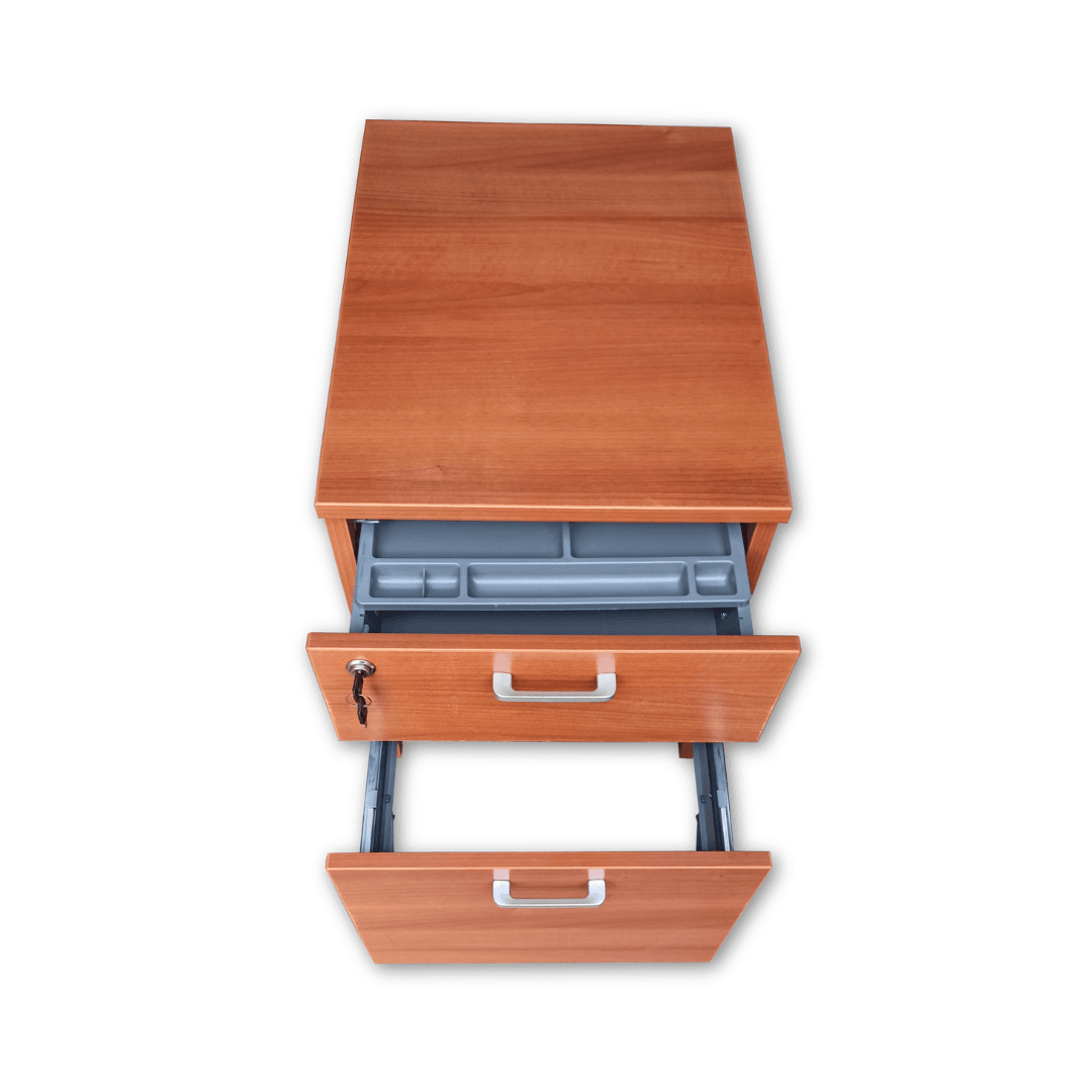 Cajonera de la marca Actiu color peral con ruedas que facilita su desplazamiento.