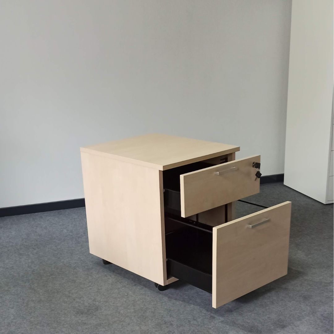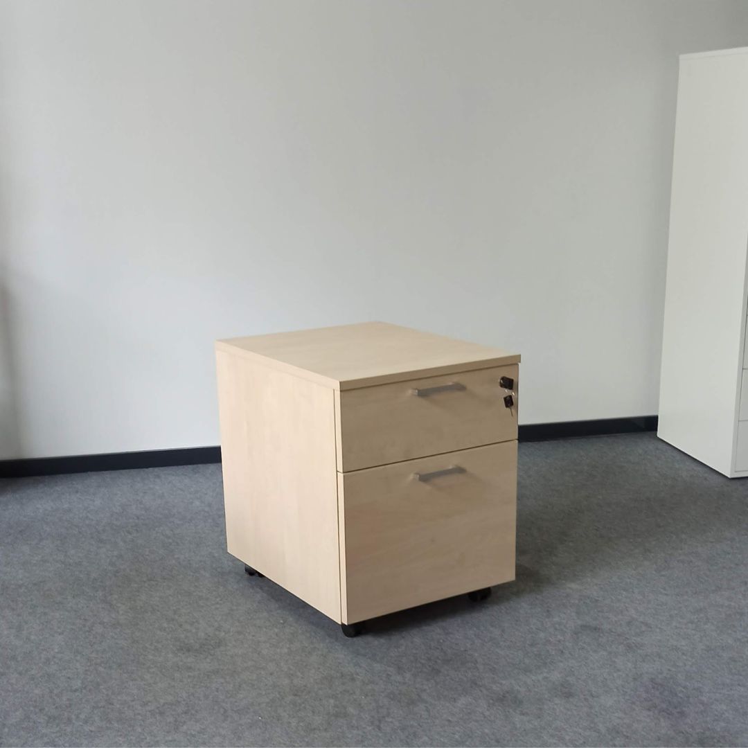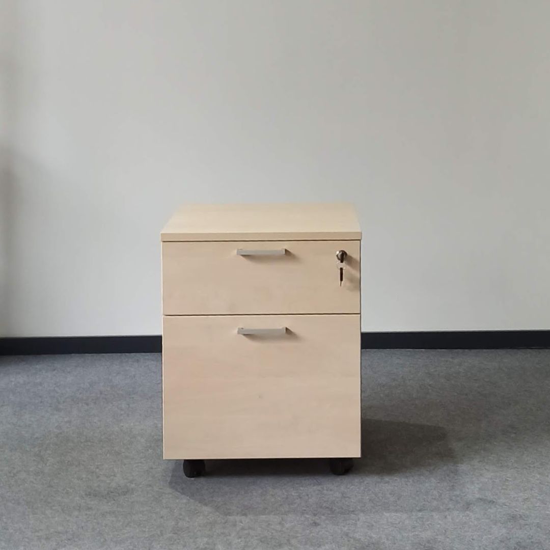 Cajonera haya de melamina, con ruedas, cerradura y llaves. Perfecta para almacenaje de oficina, tanto de hogar como de entornos de trabajo, siendo un complemento indispensable para mesas operativas. Con la comodidad de poder desplazarla sobre ruedas.