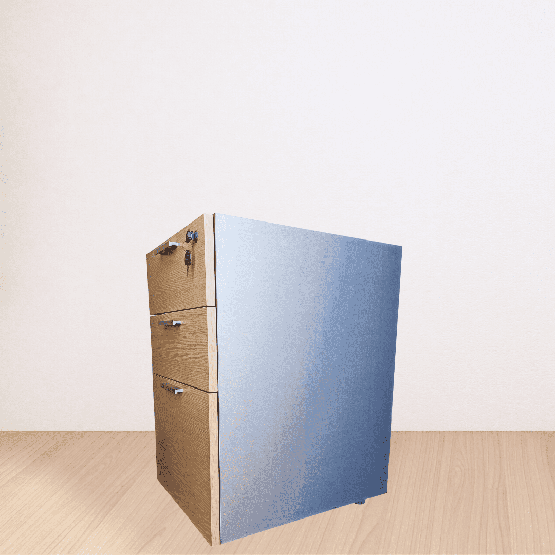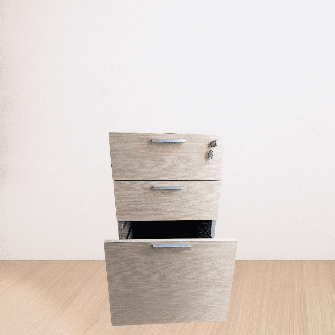 Cajonera pedestal Forma5. Esta cajonera se utiliza en forma de pedestal, tiene dos cajones y un cajón archivador, tiene cerradura y llaves.