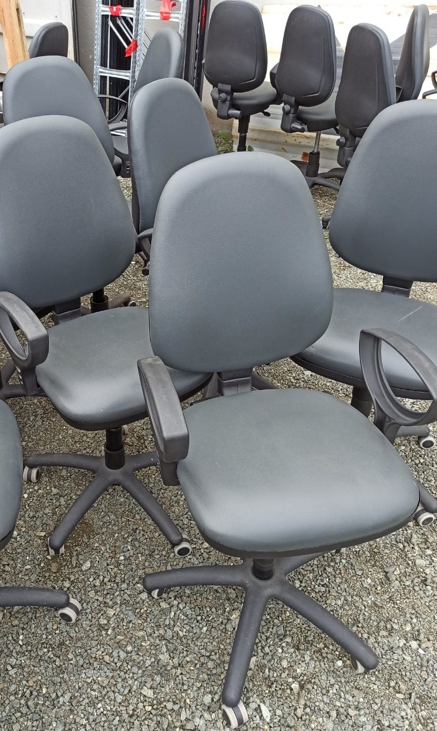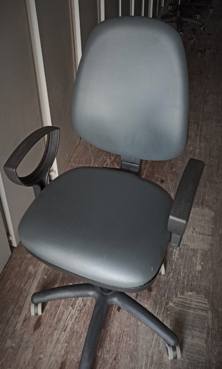 Sillas giratoria operativa de ecopiel color gris oscuro, brazos fijos, regulable en altura y inclinación del respaldo.